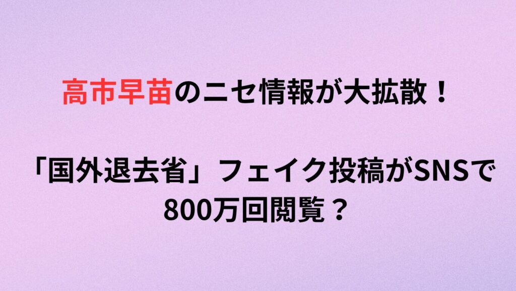 高市早苗のニセ情報が大拡散!「国外退去省」フェイク投稿がSNSで800万回閲覧?