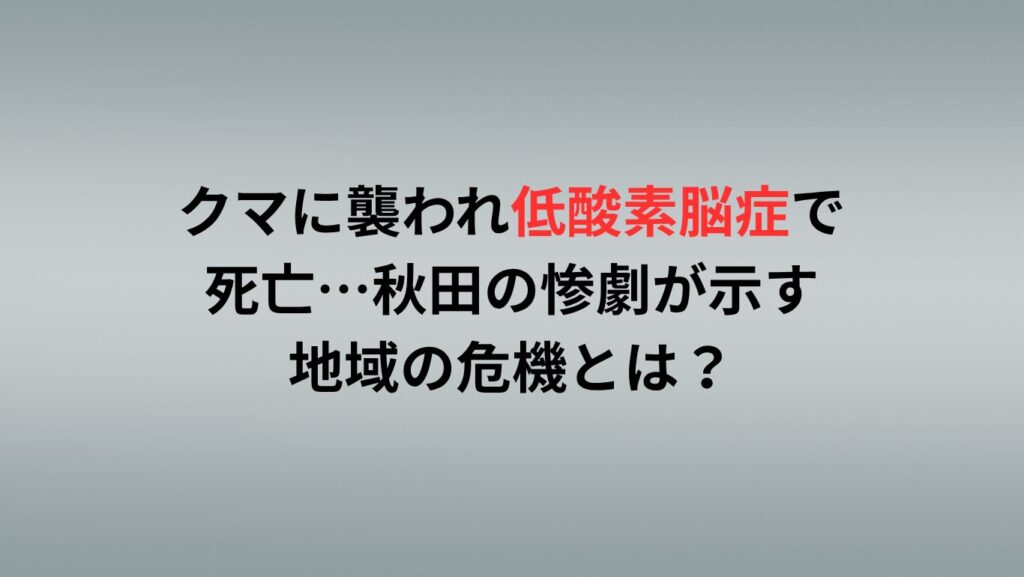 クマに襲われ低酸素脳症で死亡…秋田の惨劇が示す地域の危機とは?