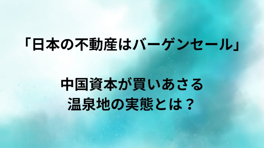 「日本の不動産はバーゲンセール」の真意とは? バブル崩壊後に活気を失った日本の温泉街。いま、その静かな場所に新たな風を吹き込んでいるのが中国資本です。 この記事では、「なぜ今、中国人が日本の温泉地を買っているのか?」という疑問を中心に、石... -