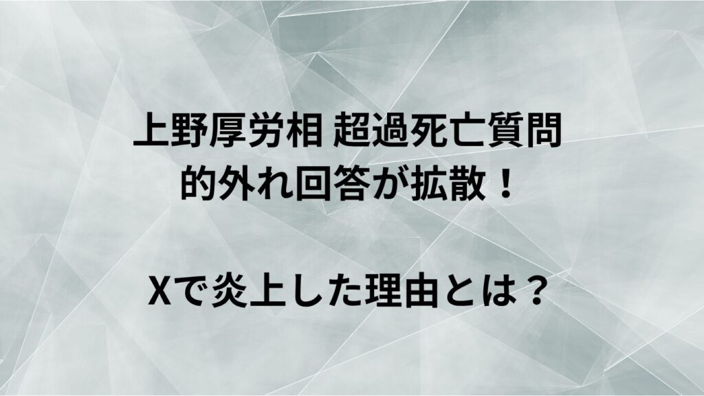 上野厚労相 超過死亡質問 的外れ回答が拡散!Xで炎上した理由とは?