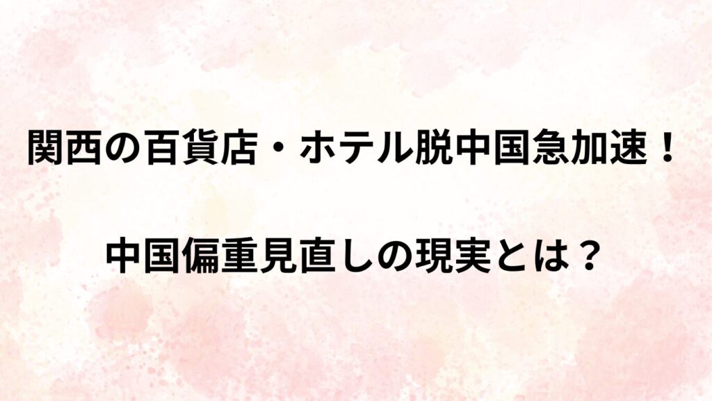 関西の百貨店・ホテル脱中国急加速がいま大きな話題になっています。 中国偏重見直しの現実が、ついに数字としてはっきり表れました。 この記事では、 ・中国人訪日客45%減のインパクト・帝国ホテル大阪8割減・星野リゾートの多国籍化戦略・百貨店の中国... -