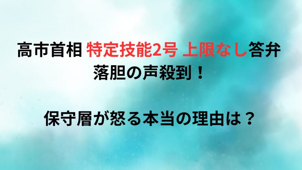 高市首相 特定技能2号上限なし答弁 落胆の声殺到!保守層が怒る本当の理由は?