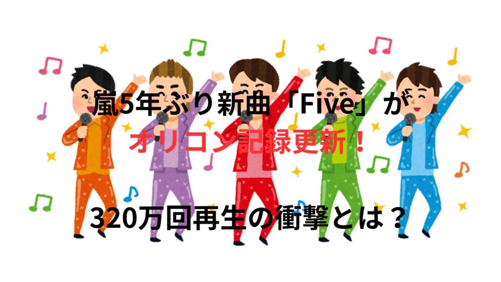 「嵐が5年ぶりに新曲を出したって本当?」「しかもオリコン史上最高320.9万回ってどれくらいすごいの?」 そんな疑問を持っている人も多いのではないでしょうか。 嵐の5年ぶり新曲「Five」は、配信初日に320万8857回再生を記録し、オリコン史上最高記録を... -