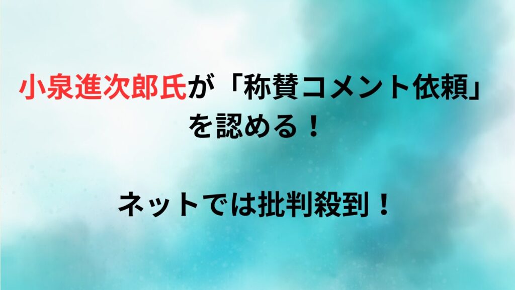 小泉進次郎氏が「称賛コメント依頼」を認める!ネットでは批判殺到!