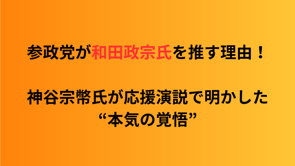 参政党が和田政宗氏を推す理由!神谷宗幣氏が応援演説で明かした“本気の覚悟”