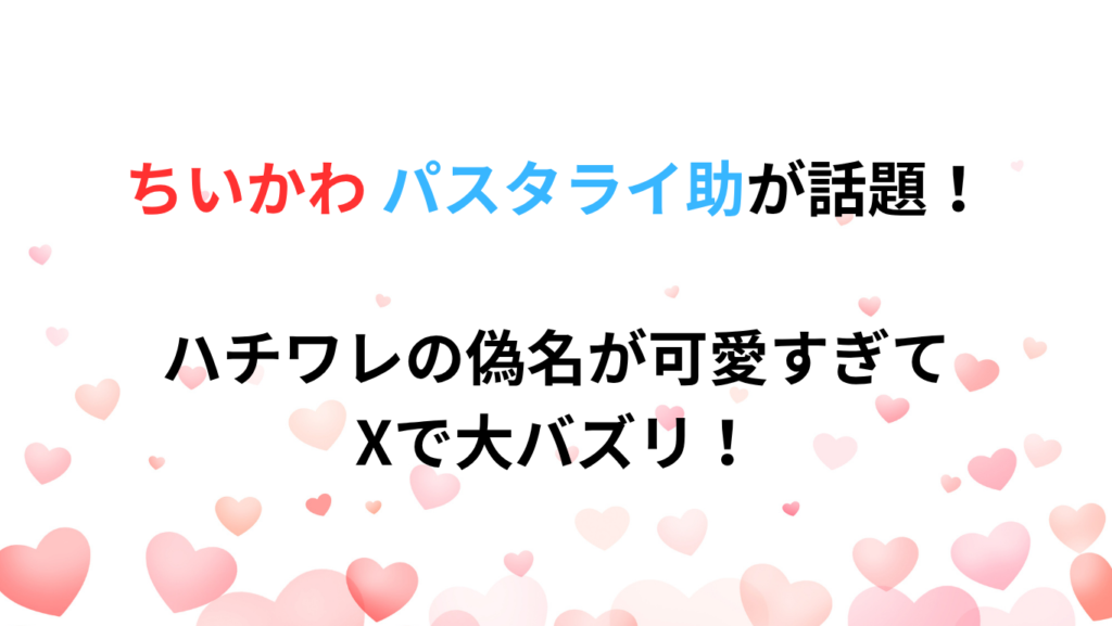ちいかわの最新エピソードで登場した「パスタライ助」というワードに、SNSがざわついています。 今回はハチワレが名乗ったこの謎すぎる偽名について、エピソードの流れやファンの反応、今後の展開予想までをまとめました。 こんなことがわかります👇 パス... -