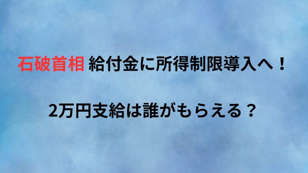 石破首相 給付金に所得制限導入へ!2万円支給は誰がもらえる?