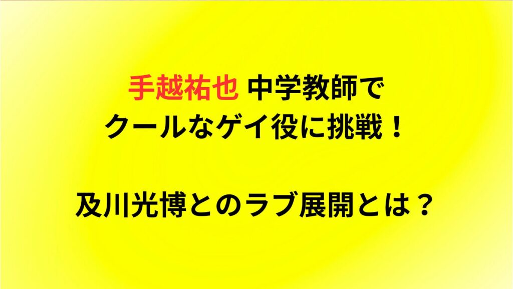 手越祐也 中学教師でクールなゲイ役に挑戦!及川光博とのラブ展開とは?